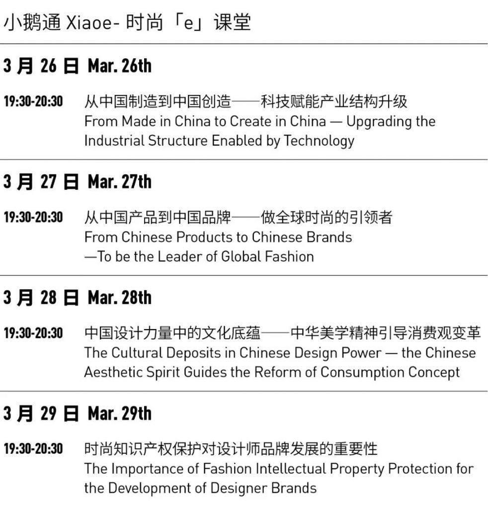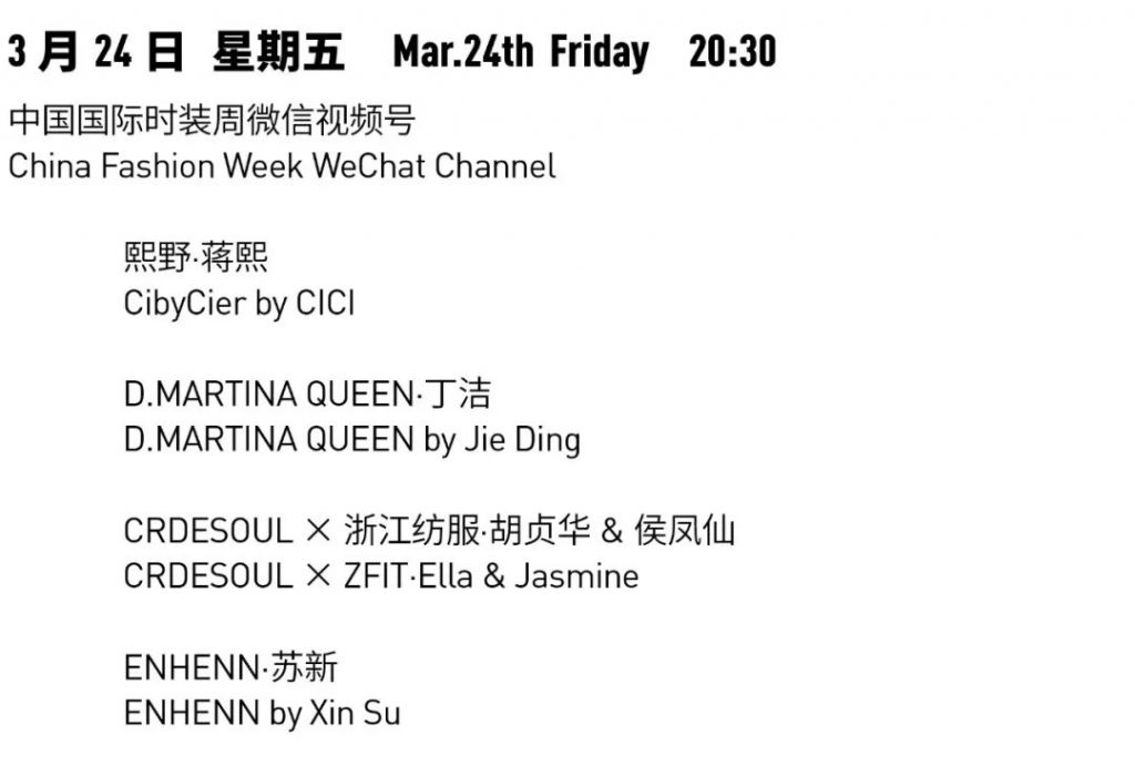 目前,中国国际时装周申票通道已经开启,官方公众号也已发布多个品牌发布及活动预览,从3月24日的开幕式开始,时装周将通过公众号进行多项直播活动。