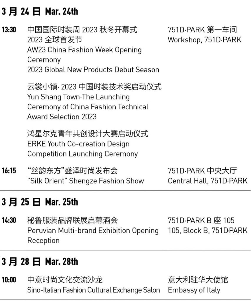 2023秋冬中国国际时装周将于3月24日至31日在北京751D·PARK、北京坊等地举办。时装周开幕式定于3月24日下午,从25日起将有51个品牌举办52场发布活动。