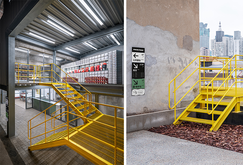 据 FREITAG 介绍,在向上海小大建筑设计事务所下需求时,品牌给出了“将二氧化碳排放量减至最低”的关键信息;当“不可避免需要使用新材料”时,需要在周围约 100 公里范围内采购(减少运输成本和排放)。而同时,基于旧建筑的改造项目又要“确保改造后的建筑结构再延续至少 30 年”。