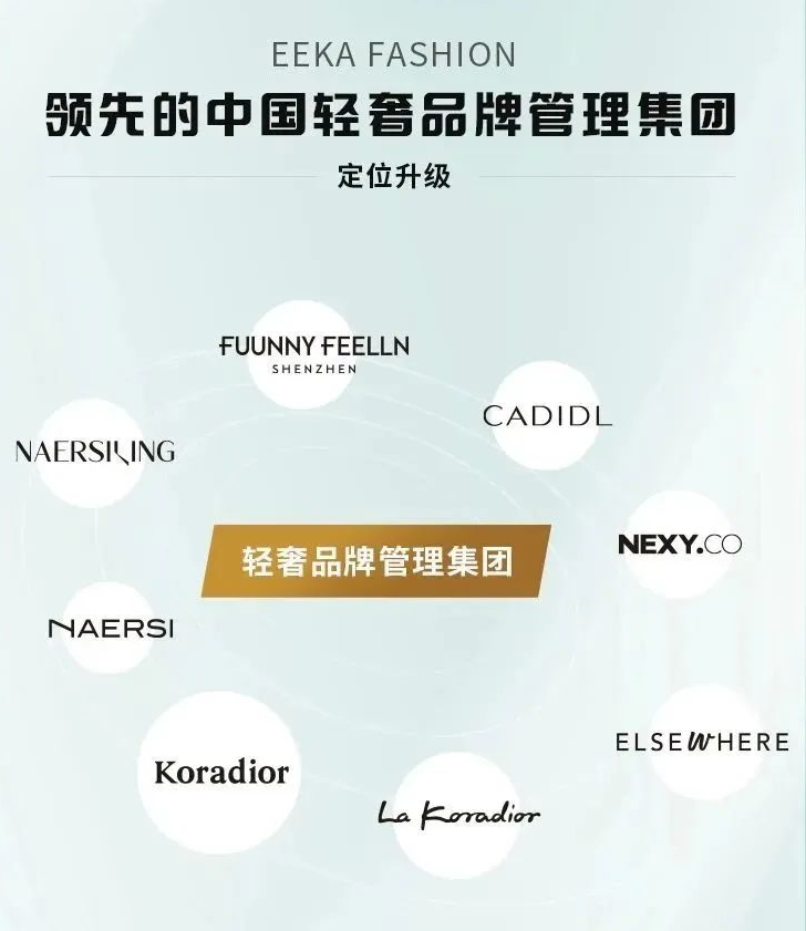 公司自成立起就深耕于中国高端女装服饰行业并于2014年在香港主板上市。目前集团旗下Koradior、 La Koradior、 Koradior elsewhere、 NAERSI、NAERSILING、NEXY.CO、CADIDL、 FUUNNY FEELLN八个自主品牌。