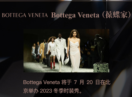 Bottega Veneta(葆蝶家)将于7月20日在北京举办2023冬季时装秀,创意总监 Matthieu Blazy 将以北京丰富的历史底蕴和他本人在中国获得的经历与灵感,为北京时装秀打造全新造型。