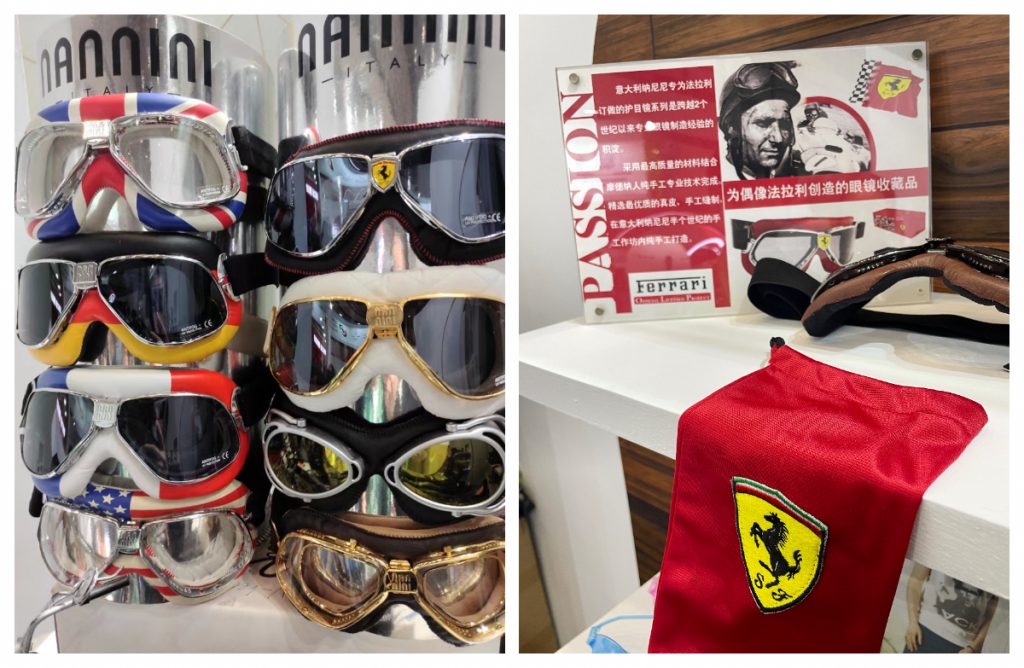 专业眼镜制造公司 NANNINI(纳尼尼)展示了法拉利授权定制系列、MOTOR 机车系列、SPORT 运动系列、EYECARE 护目和太阳镜系列、N-RED 意大利红系列。NANNINI 创立于 1954年,专注为汽车和摩托车赛车手开发高科技护目镜,此后,公司还开发了适用于滑雪和航海场景的眼镜。