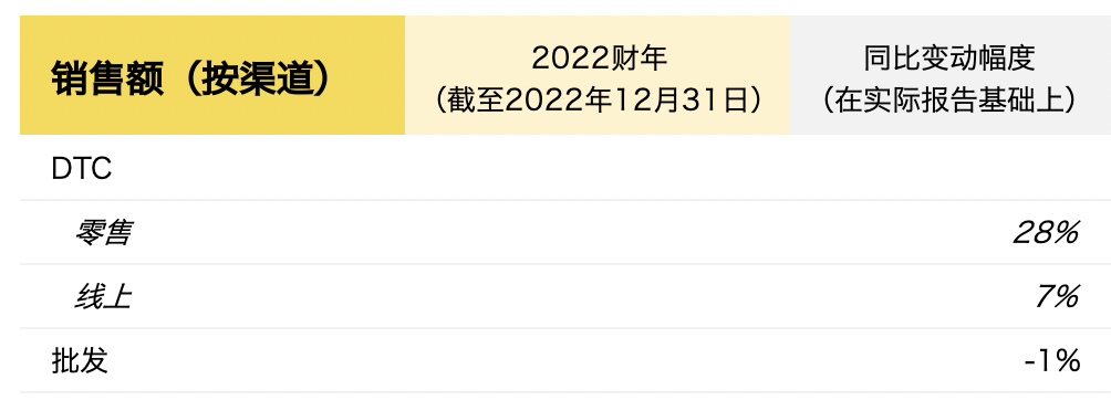 所有DTC(直面消费者)渠道都实现了收入增长。尽管第三方物流仓库受到了网络攻击,但零售和在线业务均实现增长,批发业务几乎持平,仅增长了1%。
