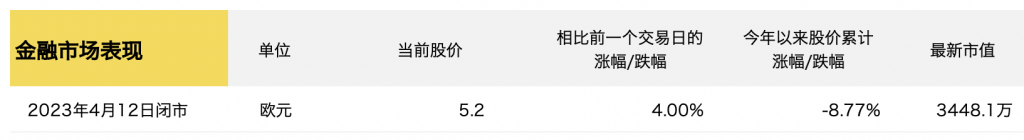 业绩数据发布后,截至4月12日收盘,Wolford股价较上一交易日上涨4%,当前市值约为4338万欧元。