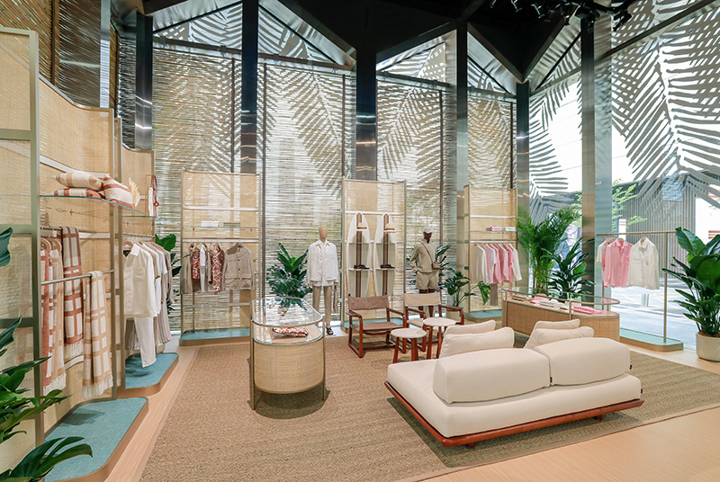 Loro Piana 介绍了位于深圳湾万象城的限时店,这次店铺空间以假日海边为灵感,当中主角是品牌 2023 春夏度假系列。