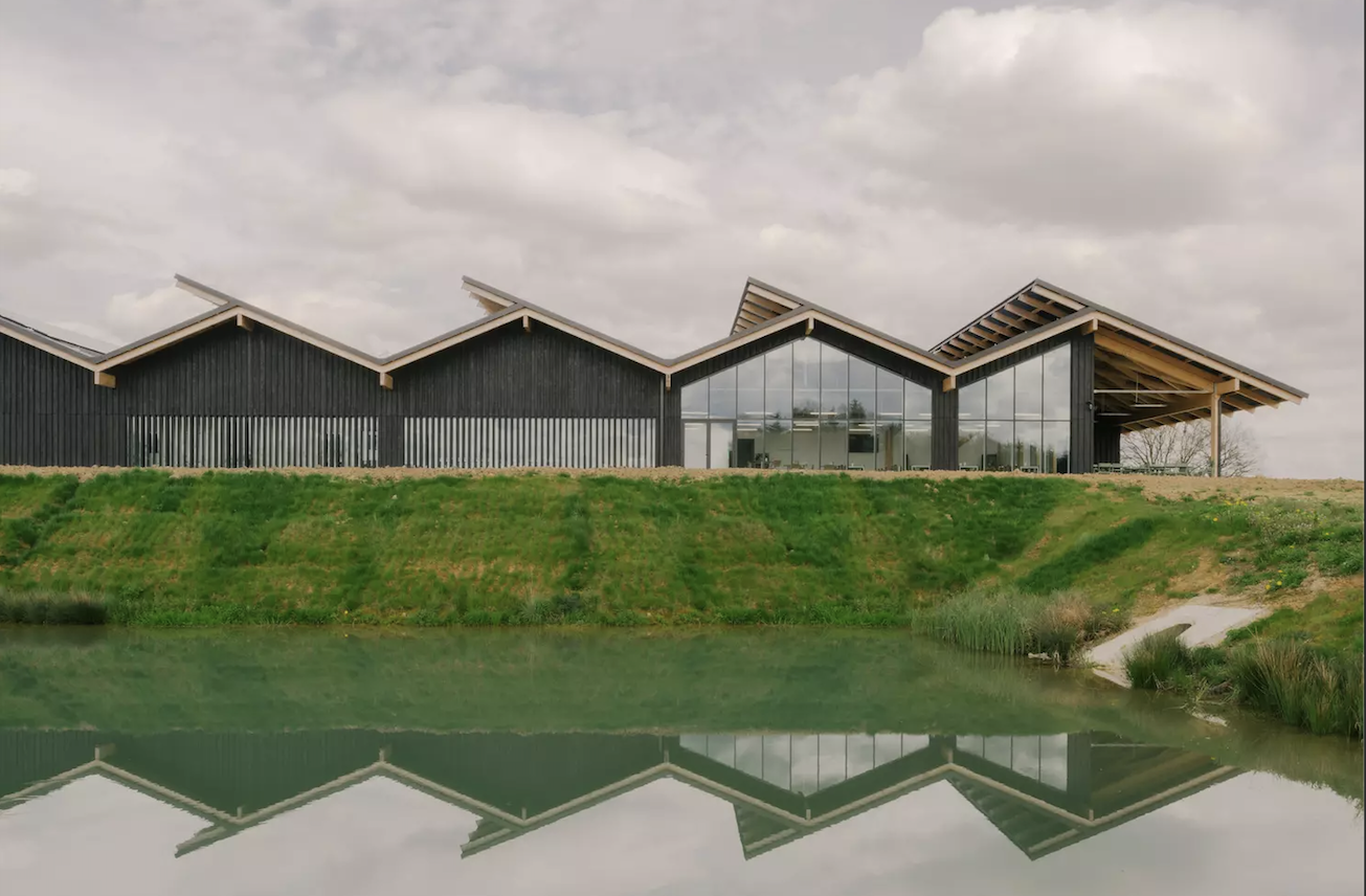 由里尔的国际工作室 Coldefy 负责设计,遵循工作室“尊重当地特性,与环境互动”的理念,位于 Tournes-Cliron 商业园内的 Maroquinerie de la Sormonne 是一座5700平方米的生物气候建筑,前期对建筑的地形位置进行了优化,使得对周边环境的影响最小化,也使得最终的建筑坐落在灌木丛和草地的起伏景观中。此外,整个建筑还建立了水回收草地和沟渠来实现植物净化,结构和外墙的木材则使用到了低碳材料,屋顶安装了1900平方米的太阳能电池板,地热供暖和空调系统,以及高性能的石棉绝缘材料,这些都有助于提升建筑的环保性能。