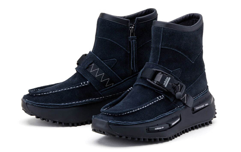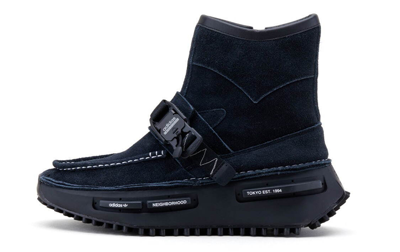 adidas 和老朋友 NEIGHBORHOOD 再度合作,5 月 27 日双方的最新合作系列正式上市。这次围绕全新版本的 NMD S1 型号展开,鞋款设计继承了 NEIGHBORHOOD 一贯的风格,黑色主体搭配白色锯齿装饰,辅以科技感十足的中底造型。 另外,双方还有带来一款中帮靴子造型的单品,它采用了磁扣鞋面细节。