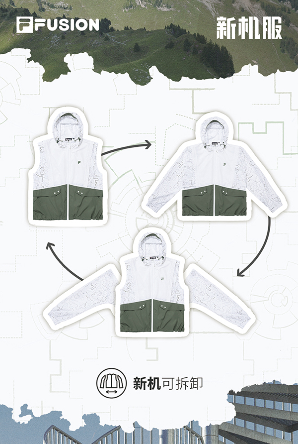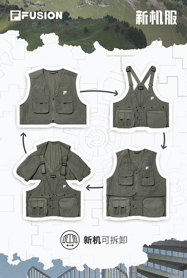 FILA FUSION 的全新 URBAN TECH 系列产品正式发售。 系列以模块化设计理念打造全新城市机能产品,它支持模块化部件自由重组来满足不同场景下的需求,此外系列产品还有反光细节、防泼水工艺、凉感及防晒面料等配置。