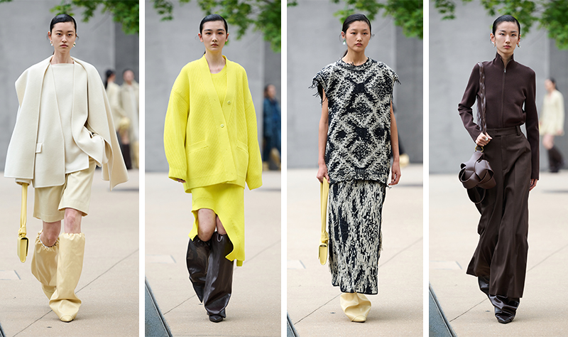 这次整个系列主打“知识分子风”,服装廓形简约流畅,又有恰到好处的体积感。色彩则是以灰色为主调,同时加入了灰蓝、灰绿、米黄等协调的柔和色调,以及带有秋冬氛围的深色,也不时有柠檬黄等清新跳跃的色彩带来惊喜。