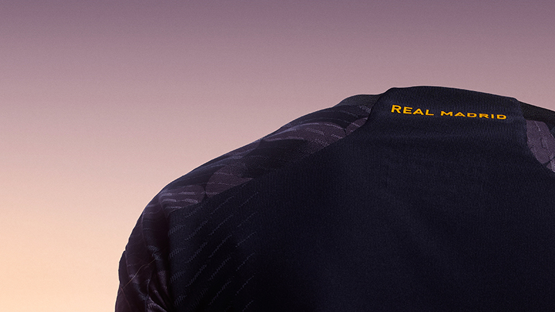 adidas 正式发布了皇家马德里 2023/2024 赛季客场球衣“俱乐部之魂”(el alma del club),它的灵感源自俱乐部的“生命与灵魂”——马德里主义。球衣以海军蓝为主体,饰有浊色满版图案,衣袖上的 adidas 标志性的三条纹采用了俱乐部的官方配色:金、银和紫色。 球衣分球员版和球迷版,从发布当天开始新球衣已经在 adidas 官网、零售店和皇马官方门店发售。