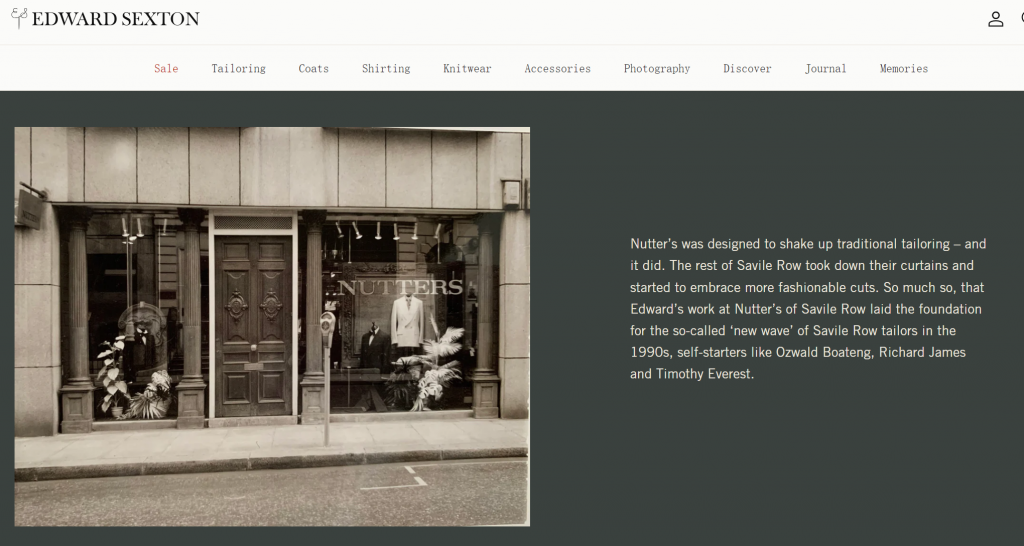 1982年,他以自己的名义开了一家新店,1990 年搬离了萨维尔街,在骑士桥(Knightsbridge)成立了一家工作室。2022年,Edward Sexton又将品牌再度迁回萨维尔街,并开设了一家全新旗舰店,选址于萨维尔街 35 号,与 Nutters 的旧址仅几门之隔。