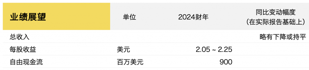 基于此,VF集团公布了2024财年业绩展望,目前预计本财年的收入将小幅下降至持平,主要是由于集团的批发业务持续疲软,以及Vans的复苏时间比预期的要长所致:
