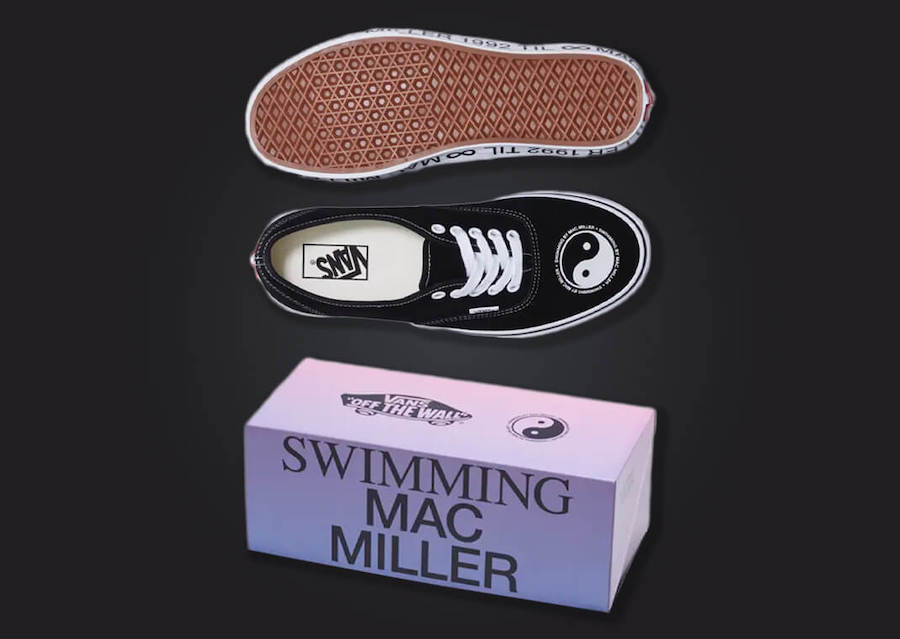 Vans 正式发售了和 Mac Miller 基金会合作的 Authentic。为纪念《Swimming》专辑 5 周年,双方打造了这次的合作款,它以简洁的黑白色调呈现,鞋头加入了太极图案和“SWIMMING BY MAC MILLER”字样,中底部分则饰有“MAC MILLER 1992 TIL ∞”。 值得一提的是,这一鞋款的部分收益将捐赠给 Mac Miller 基金会,用于帮助更多音乐人。