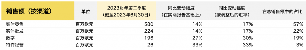 实体批发经汇率调整后的收入也增长了17%,反映出全球批发合作伙伴对最新BOSS和HUGO系列的持续强劲欢迎。