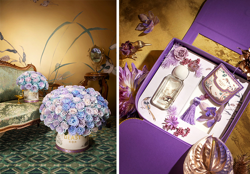 野兽派发布七夕限定“香荷包”系列,系列以中国传统定情信物为灵感打造,当中的限定香水礼盒内有“东方美人”香水和香囊,它们采用馥郁花香调,前调是柑橘与黑醋栗,中调是兰花和复合花调,尾调是龙涎和麝香。