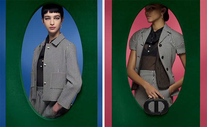 日前 DIOR 发布了 2023 秋冬女装成衣系列广告大片。 这次系列演绎了上世纪 50 年代的优雅风格,藤格纹、千鸟格、“花冠”裙等品牌经典元素都出现在这个系列中。这季大片则再次由意大利摄影师 Brigitte Niedermair 掌镜,色彩鲜艳的几何元素与本季以黑白灰为主调的设计形成了鲜明对比。