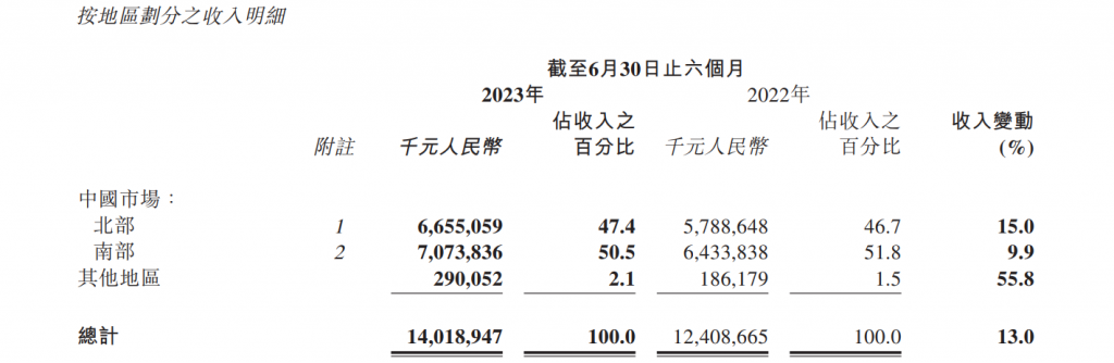 李宁集团2023年上半年主要财务数据一览: