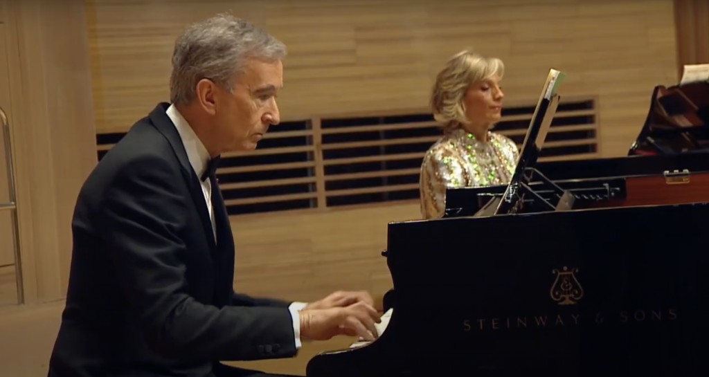 在艺术藏品以外,路易威登基金会的礼堂还为音乐家们提供表演场地。Bernard Arnault的妻子Hélène Mercier 是一名钢琴家,Bernard Arnault本人也非常喜欢钢琴。