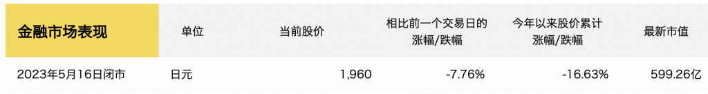 财报发布后的第二天,截至5月16日收盘,Snow Peak股价下跌了7.76%,当前市值约为600亿日元(约合人民币30亿元)。