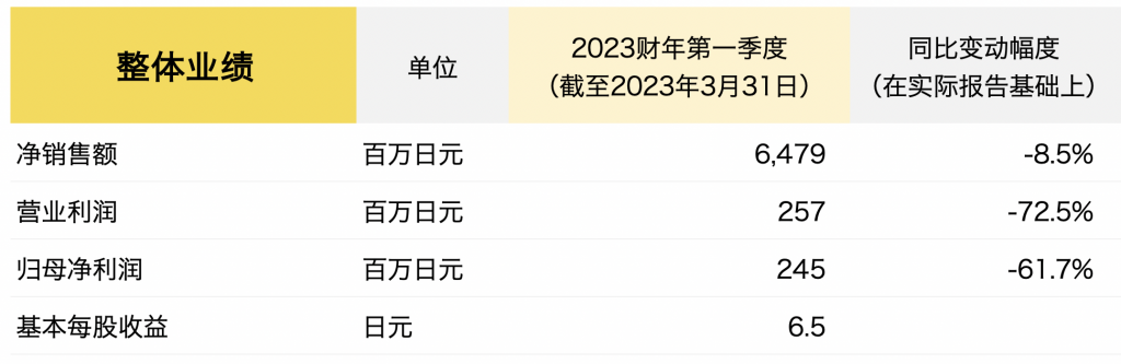 截至3月31日,Snow Peak 2023财年第一季度的主要财务数据如下: