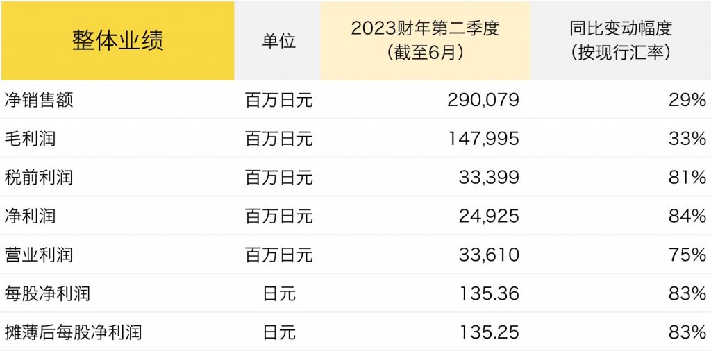 日本运动巨头 Asics(亚瑟士)公布了截至6月底的2023财年第二季度财务数据:该季度延续了第一季度的强劲表现,净销售额同比增长28.9%达到创纪录的2900亿日元(约合145亿人民币),营业利润率同比增长了10.4个百分点。报告期内,所有地区和类别的业务均实现同比增长。