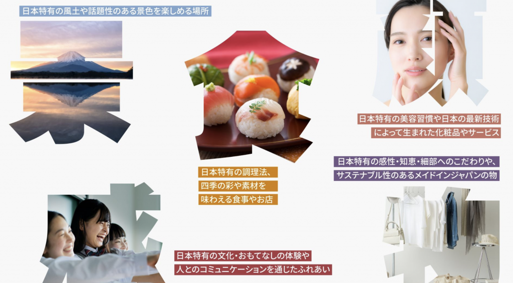 在一份官方声明中,资生堂介绍称,“观美日本/Sightseeing Japanese Beauty”平台针对中国消费者对日本最感兴趣的事物,是一处使用户发现日本之美的地方。平台将内容分为以下五类:愉悦美感(the senses)、精致美颜(facial aesthetics)、缤纷美食(food)、旖旎美景(sceneries)、匠心美物(products),从官方、达人等多个角度出发,使用户得以利用五种感官充分体会日本文化风情,以及源自日本独特视角和理念的一切体验,并展示一众体现日本可持续发展理念的案例等,其中包括“藏在”日本各个角落、不为人知的目的地以及人们可能去过但不甚了解的景点及景观。