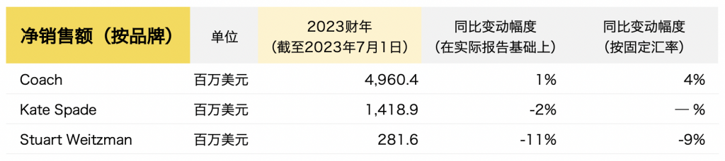 截至7月1日,Tapestry集团2023财年的主要财务数据如下: