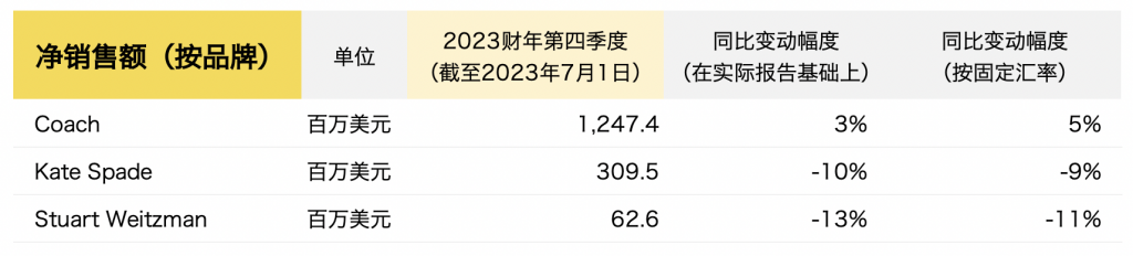 截至7月1日,Tapestry集团2023财年第四季度的主要财务数据如下:
