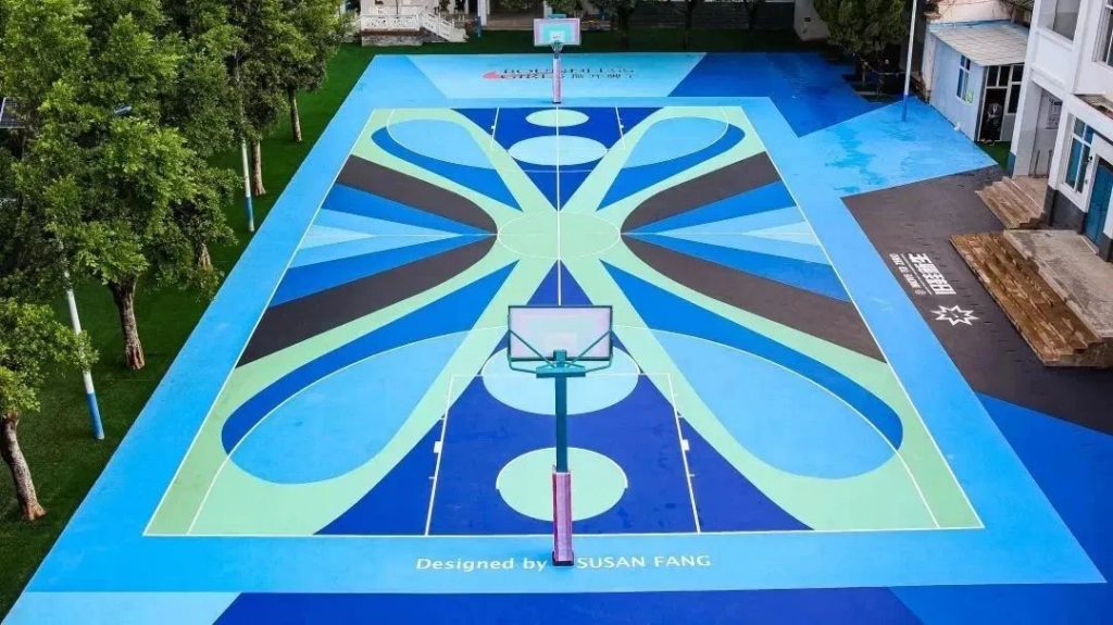 美国运动品牌 Nike(耐克)携手中国设计师 Susan Fang,于云南大理巍山县庙街镇古城小学打造首座“撒开脚丫”主题环保球场,以蝴蝶、彩虹和爱心元素为主题,以具象化的形式将爱与能量向外层层传递,并用丰富的色彩还原女孩眼中彩色的运动视界,让女孩们在参与运动时可以更加快乐和舒适。