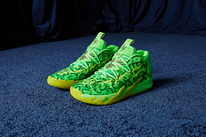 PUMA 和拉梅洛·鲍尔共同发布了和拉梅洛·鲍尔个人生活方式品牌 LaFrancé 合作推出的联名系列,这次系列从传统的法国花卉装饰图案中汲取灵感,以法国国花香根鸢尾为核心元素,并搭配上了荧光色和外星爪痕效果。
