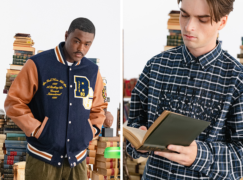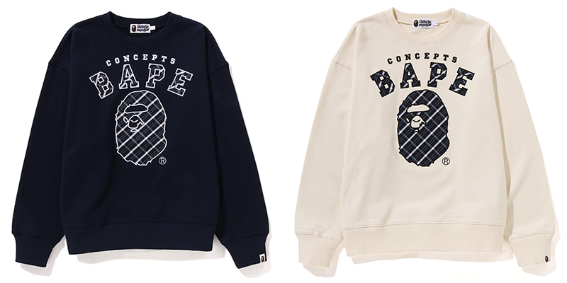 A BATHING APE 和 Concepts 合作的全新系列正式发售,这次系列以“School of Thought”为概念,从美式复古文化、常春藤联盟和体育运动等风格题材汲取灵感,最终有包括皮袖棒球夹克、针织开衫、圆领卫衣、格纹衬衫、短袖在内的经典学院服饰及家居用品,它们融入了复古学院风和纯正街头气质,同时也有 A BATHING APE 和 Concepts 各自的代表元素。