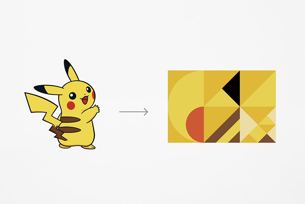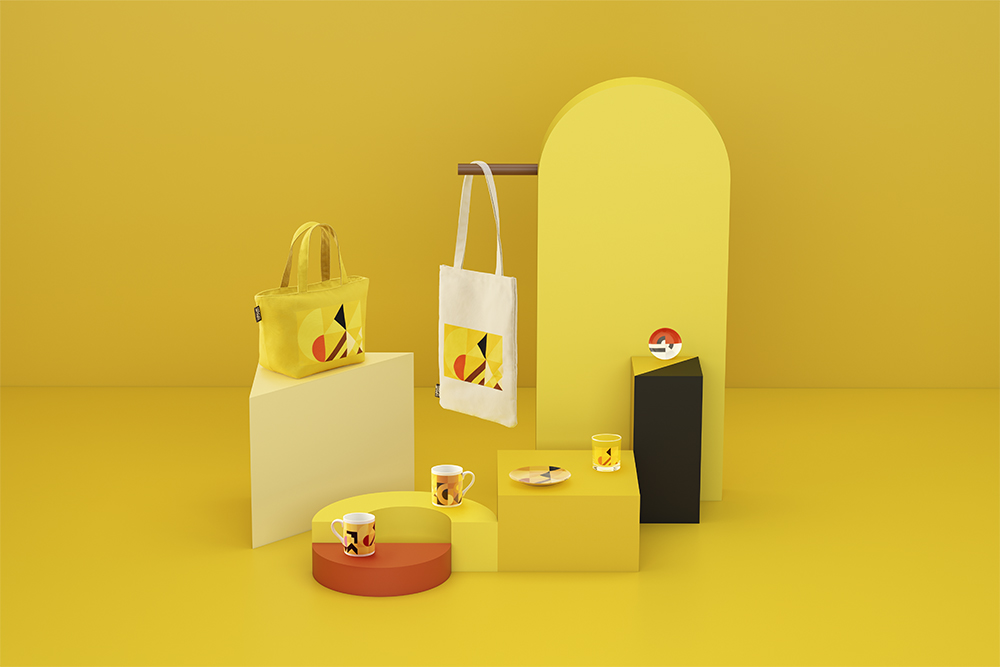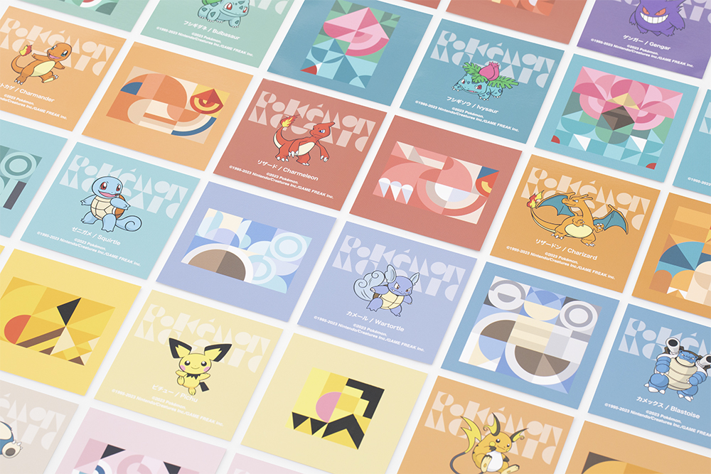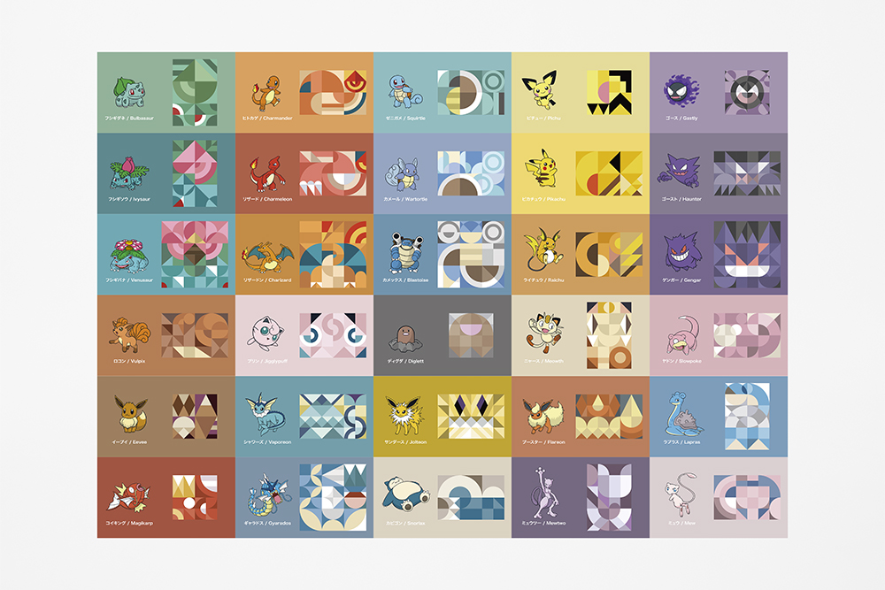 这次项目是一整套周边产品,虽然还是以宝可梦或者说神奇宝贝为核心元素,但和绝大多数周边产品以具体形象来直接设计不同,nendo 将每个神奇宝贝的元素提取了出来——包括颜色,包括基本的形态,随后将它们抽象化,并以圆形、正方形、三角形等几何形状拼接实现。