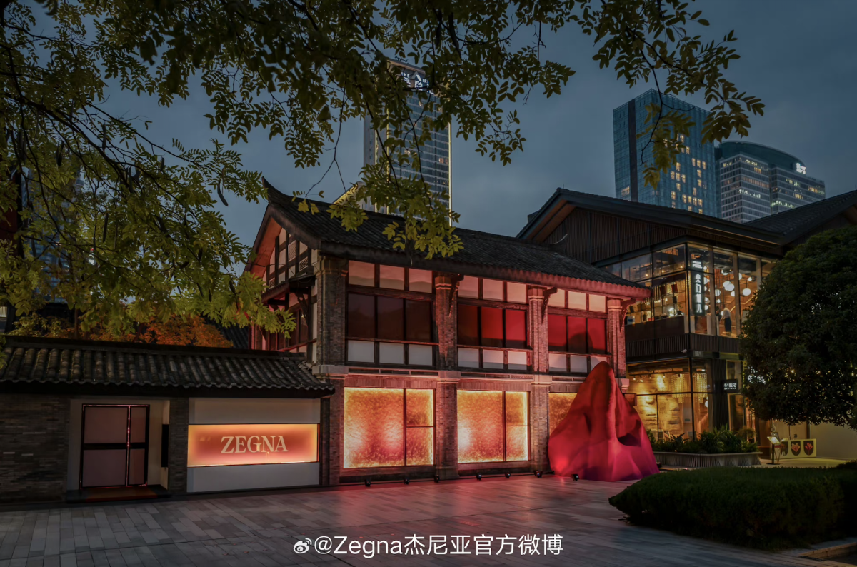 近日,成都太古里的高宅外侧换上了意大利奢侈男装品牌 Zegna(杰尼亚)的品牌海报。