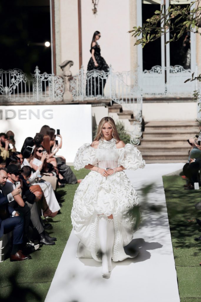 整场大秀汲取文艺复兴与达芬奇庄园的灵感。比如服装设计借鉴了文艺复兴时期的时尚元素;从达芬奇庄园内的花朵元素汲取灵感,独创了花朵绗缝纹理,并用手工艺技术装饰在服装上。