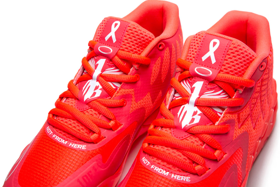 “三球”LaMelo Ball 和 PUMA 合作推出 RARE RESERVES 限定系列新品。这次双方以“世界乳腺癌防治月”(每年的 10 月)为主题,带来了这款 MB.01 BCA。它以抢眼的亮粉色调呈现,搭配白色细节,鞋舌处有特别的丝带标志。 它目前已经正式上市。在推出这双主题鞋款的同时,PUMA 也有向 Susan G. Komen 乳腺癌基金会捐款。