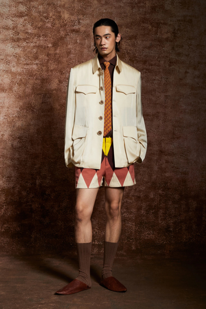 本系列灵感源于设计师从上海到伦敦再到马拉喀什的旅程,在最新系列中使用了水洗天丝牛仔、触感丝滑且垂坠的粘胶织物、干爽粗纹肌理的亚麻面料,光感且具有颗粒凹凸肌理的当代改良式中山装在此系列中亦有呈现。