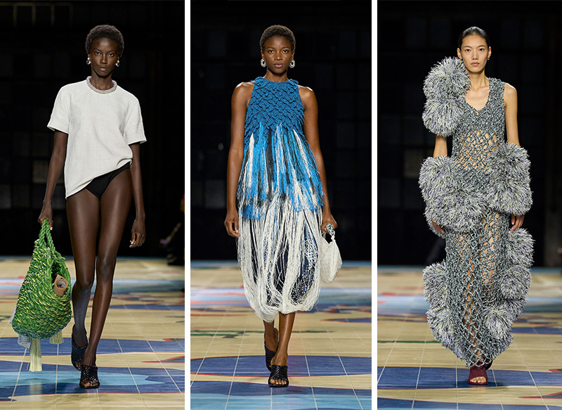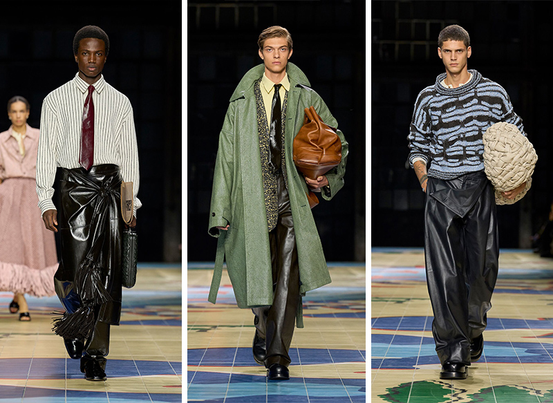 “动态的工艺”这一概念继续贯穿整个系列,其中有大量的流苏和编织设计,以皮革模仿其它材质的游戏也还在继续,包袋方面皮革编织的“草编包”、皮革“报纸包”都很有趣。