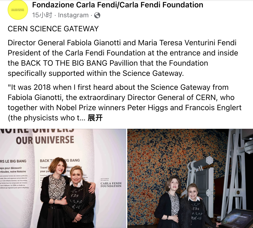 近日,法国奢侈品巨头 LVMH 路威酩轩集团旗下意大利奢侈品牌 Fendi(芬迪)二代掌门人之一、 Carla Fendi 的同名基金会 Carla Fendi Foundation 资助了欧洲粒子物理研究中心(CERN,也称欧洲粒子物理研究所)的最新科学教育和推广旗舰系列项目:科学门户(Science Gateway)。