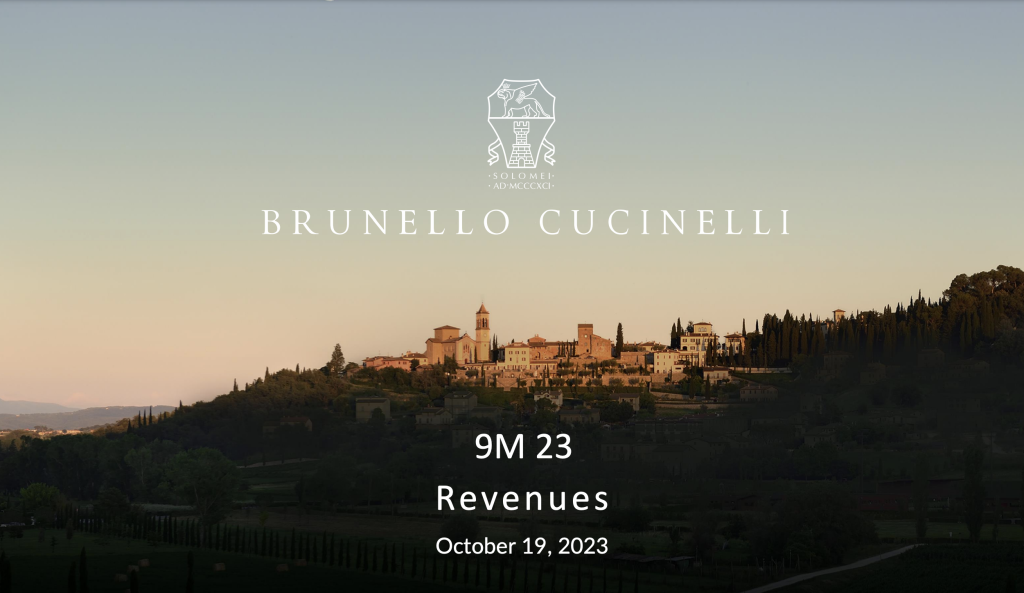 中欧夏令时10月19日收盘后,意大利奢侈品集团 Brunello Cucinelli(布内罗·古奇拉利)公布了截至2023年9月30日的前9个月初步业绩数据:所有地区和渠道均有出色表现,集团销售额同比增长27.5%(按固定汇率计增长28.8%)至8.184亿欧元,上调全年销售额增长预期至20%~22%(此前预期为17%~19%)。