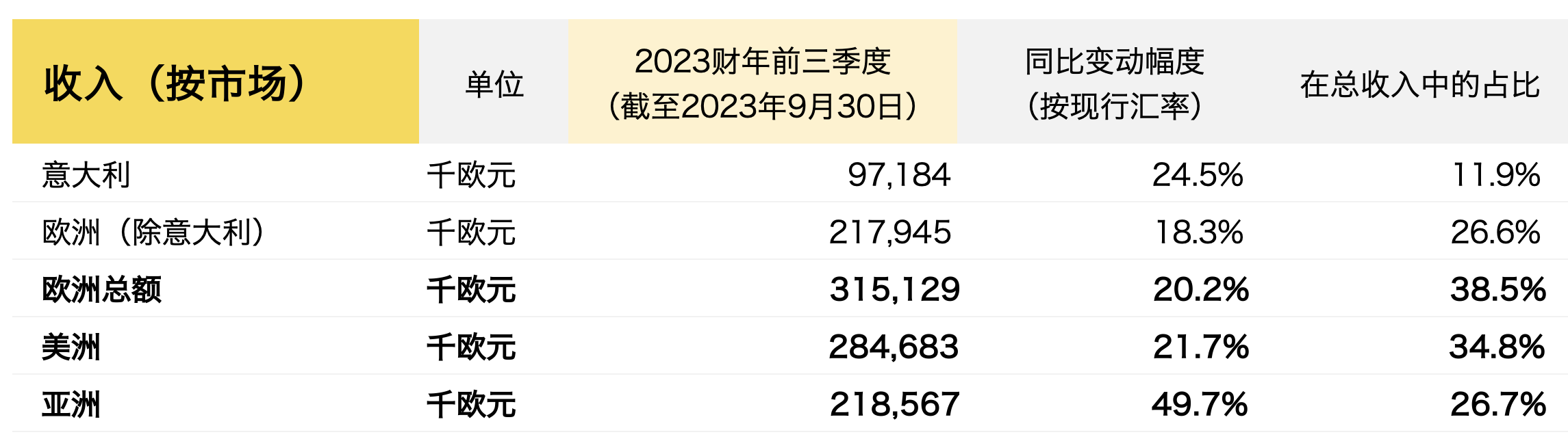 销售额同比增长18.3%至2.179亿欧元,占总销售额比例为26.6%。第三季度销售额也实现高两位数增长,主要得益于本土客户需求呈现出稳定且可持续增长。此外,今年上半年来自北美的高端游客也为欧洲市场业绩成功做出了主要贡献。