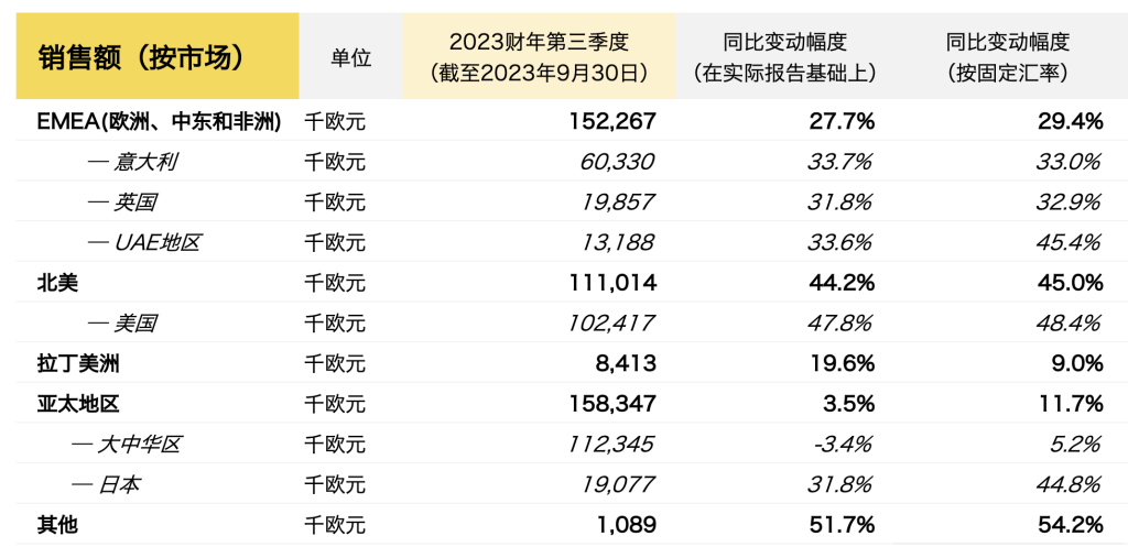 亚太地区:第三季度收入同比增长3.5%至1.58亿欧元,有机增幅30.9%。其中,大中华区收入同比下跌3.4%,按固定汇率计增长5.2%;日本市场收入增长显著,同比增长31.8%至1900万欧元。大中华区前9个月收入同比增长15.3%至4.19亿欧元,有机增幅超20%。