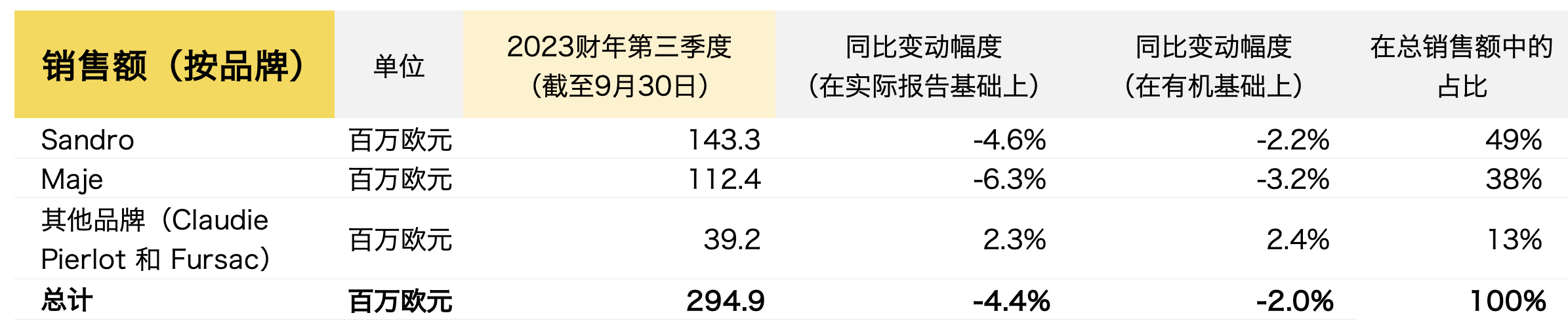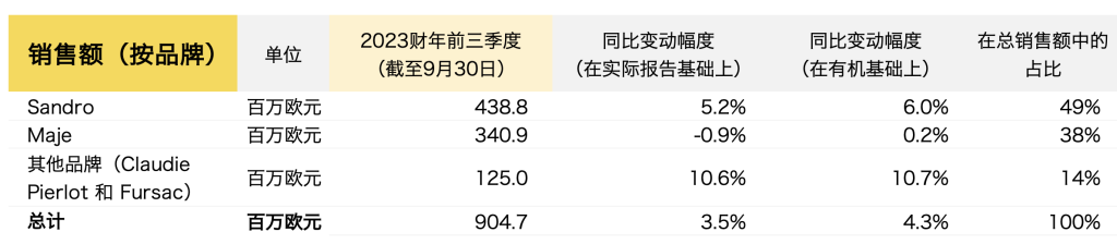 第三季度,旗下主要品牌Maje 和Sandro销售额分别录得3.2%和2.2%有机下跌,但由Claudie Pierlot 和 Fursac 组成的其他品牌部门录得2.4%有机增长。