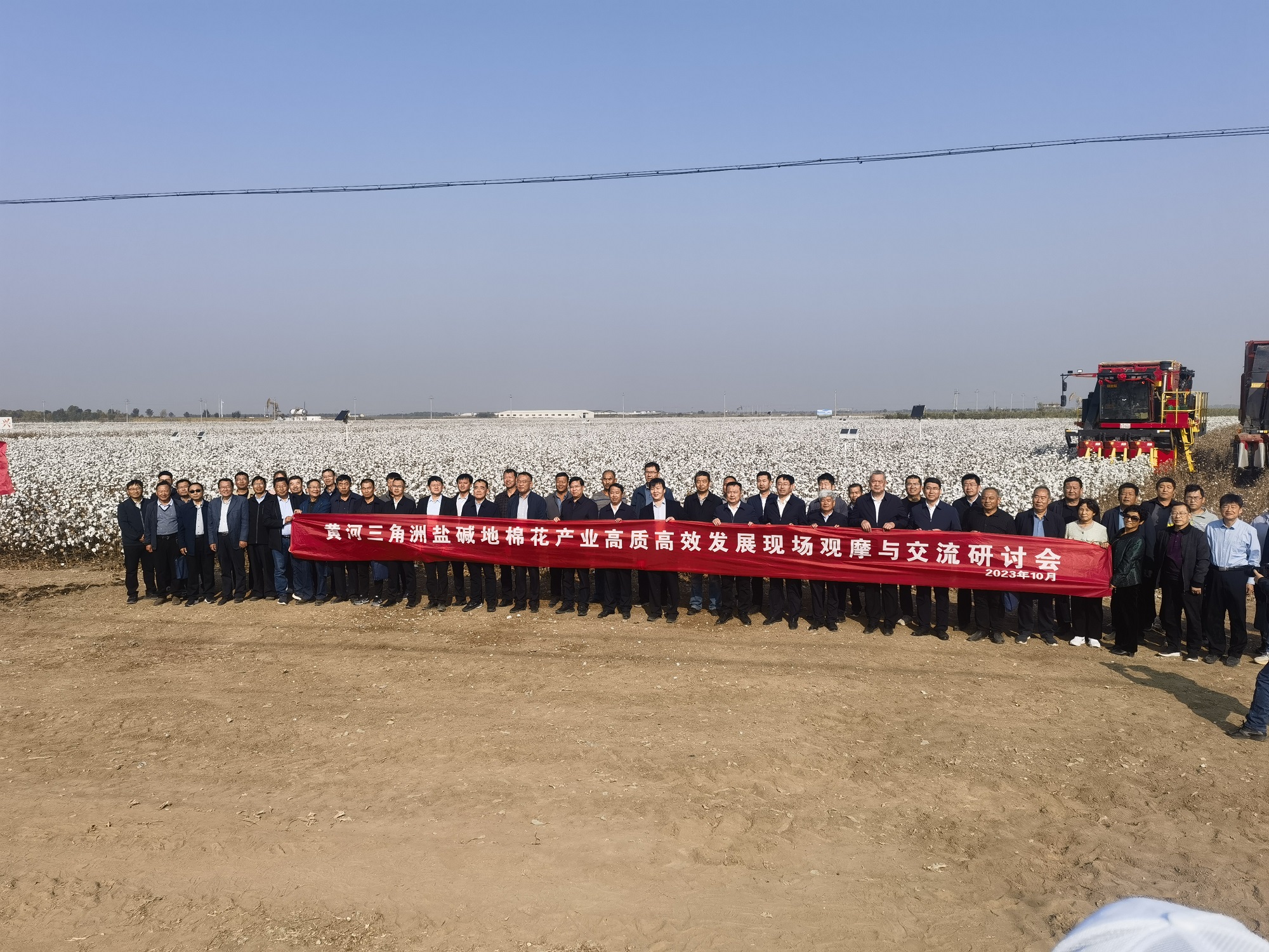 会议组织专家对适宜黄河三角洲盐碱地种植的宜机型棉花新品种进行了现场评估与测产,示范机采棉品种亩产超过350公斤,机采棉田吐絮、脱叶效果好,全面达到机采要求。