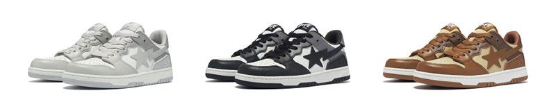 BAPE SK8 STA 秋季限定配色发布,这次有“经典黑”、“复古棕”和“高级灰”3 款,它们都采用了小牛皮搭配全粒面皮革的鞋面,不同配色以同色系的方式在鞋面上呈现。它们将在 11 月 4 日发售。