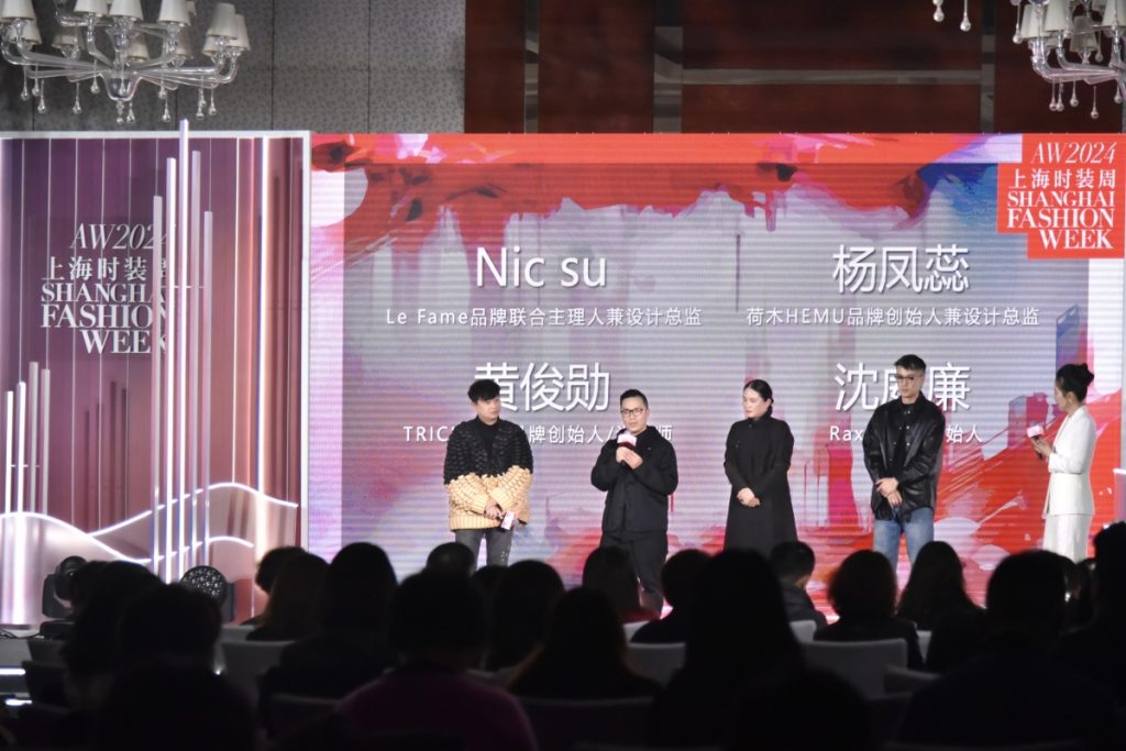 上图:发布会现场(左起)Raxxy品牌创始人沈威廉、TRICKCOO品牌创始人/设计师黄俊勋、荷木HEMU品牌创始人兼设计总监杨凤蕊、Le Fame品牌联合主理人兼设计总监Nic su