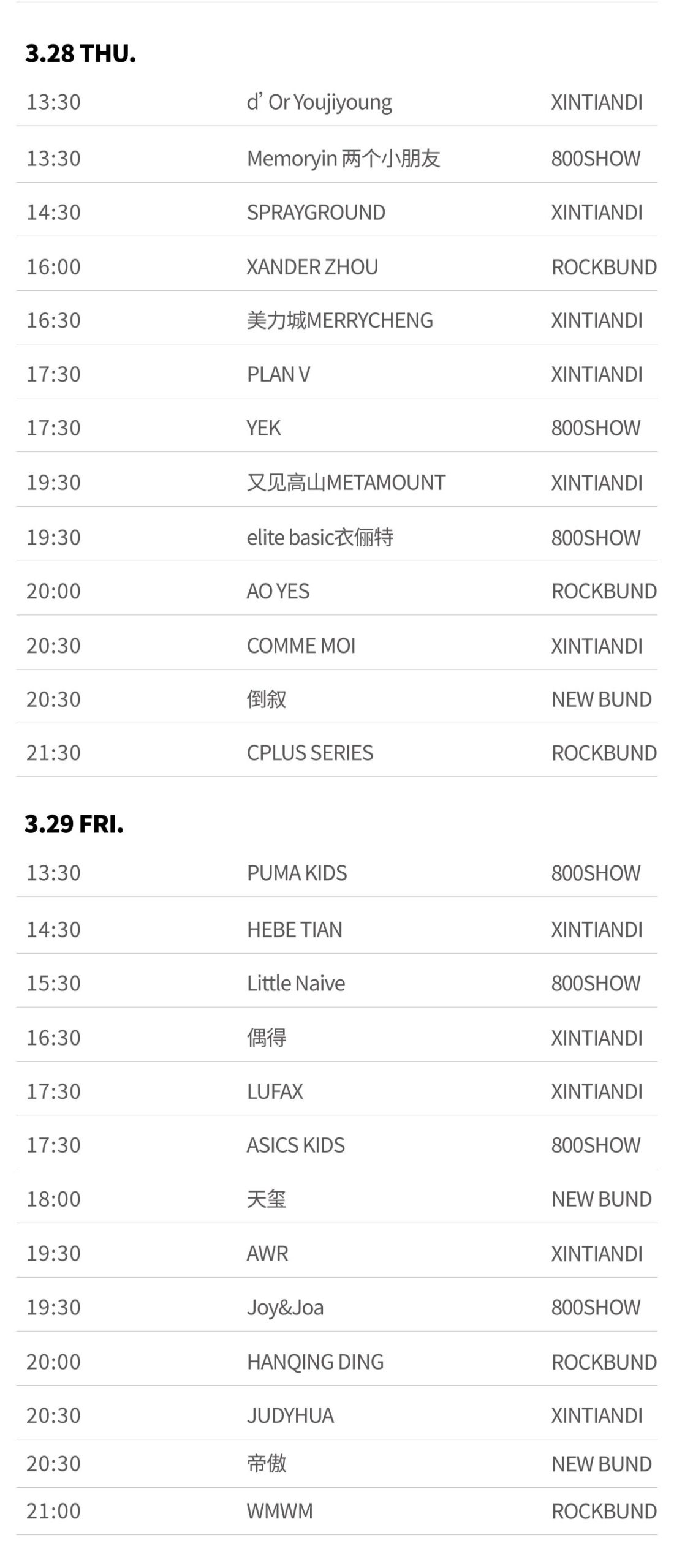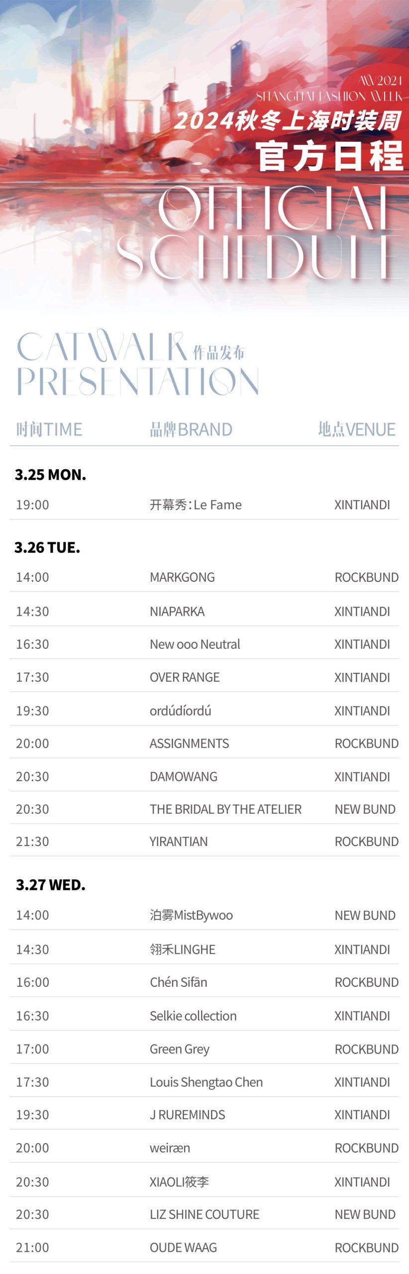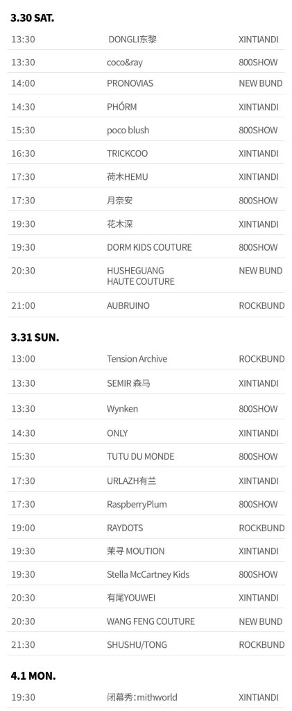 附2024秋冬上海时装周官方日程: