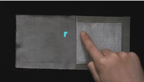 该研究还展示了这种基于人体耦合原理的智能纤维的几种应用:在不使用芯片和电池的情况下,实现了纤维触控发光、织物显示以及无线指令传输等功能。