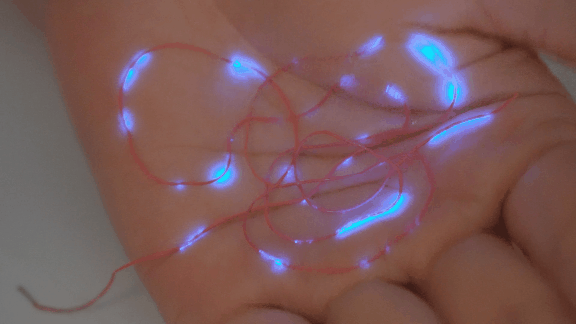 在添加特定功能材料后,仅仅经过人体触碰,这种新型纤维就会展现发光发电的“神奇一幕”。
