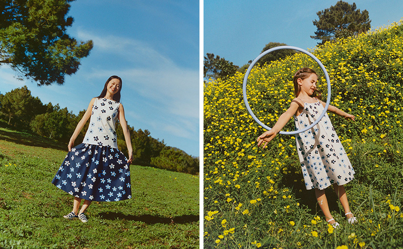 这次系列继续由女装、女童装和婴幼儿装组成(没有男款,不过包包这些也算中性款了),可以作为亲子穿搭是一大卖点。同时和之前合作系列的方式类似,印花图案被满印在了服饰单品上,并且系列所有单品都提供了多种印花图案的版本可选,而 6 款印花各有风格,足够衍生出丰富的造型搭配的可能性。