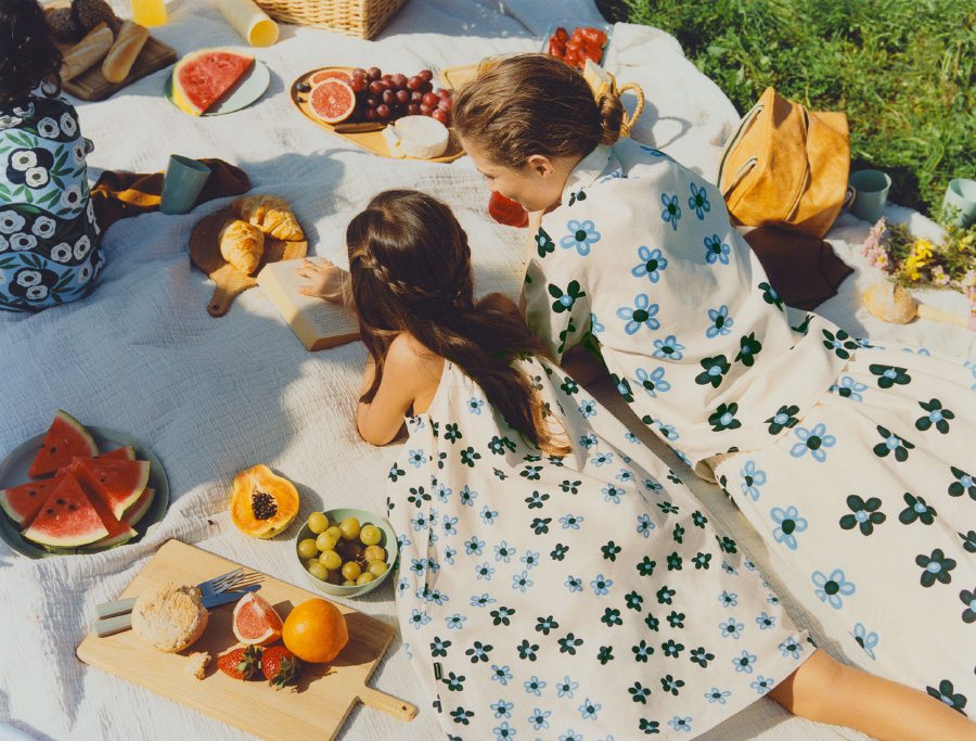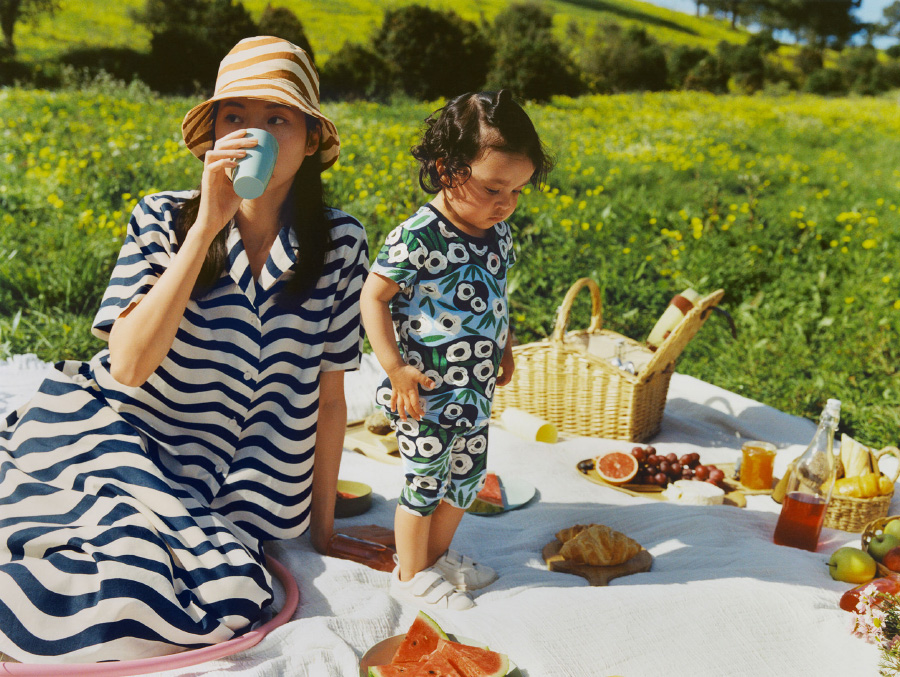 如果说之前的新年系列强调的是温暖轻盈,那么在这个春暖花开的季节,系列则更加体现热情绚丽。这次系列以夏日野餐为灵感,用到了 Marimekko 的 6 款经典图案,部分图案在系列中提供了两种配色方案。